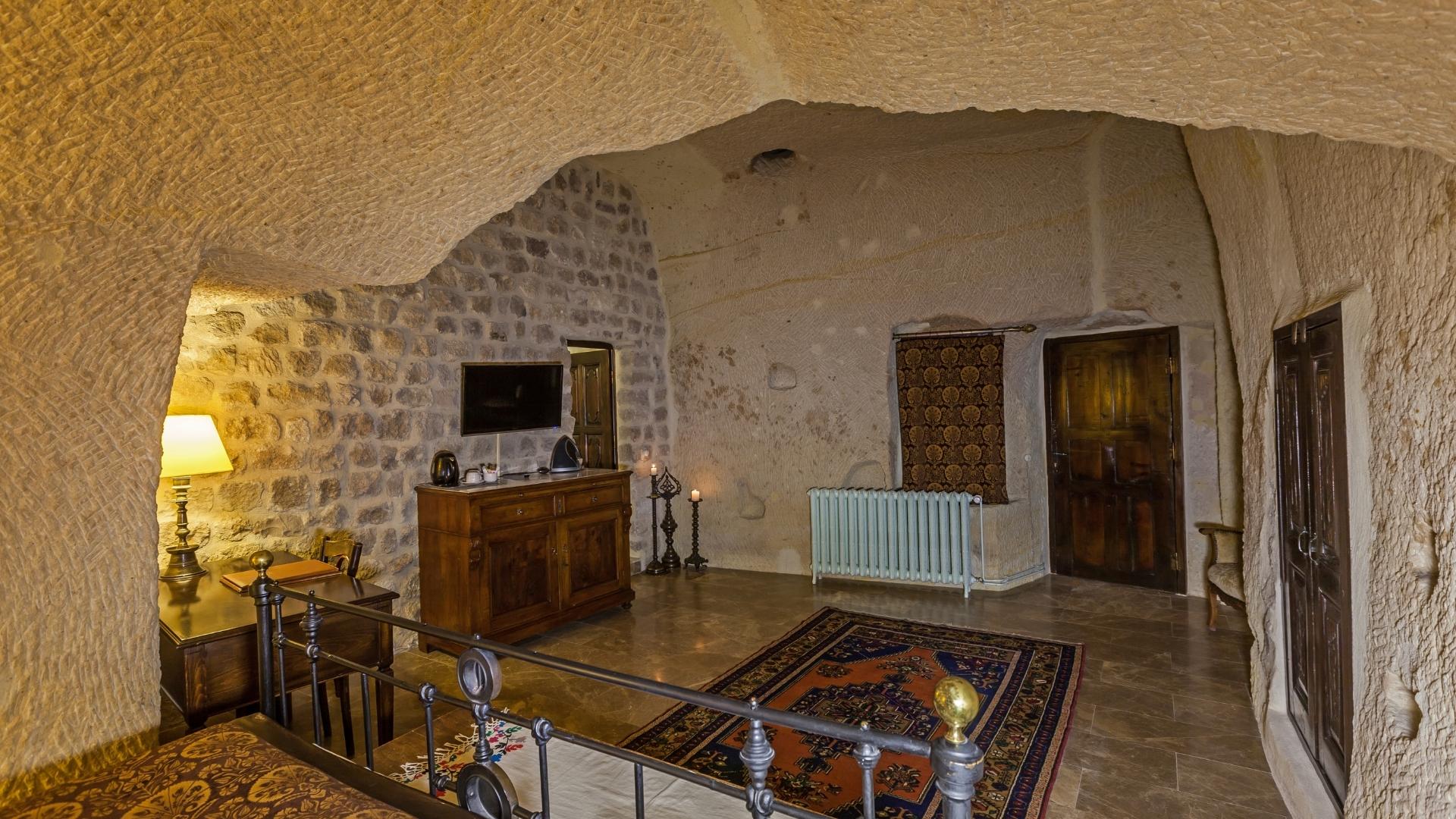 Authentic Charm A cozy 5th-century cave chamber that offers an intimate connection to history. Featuring original rock walls, hand-crafted Ottoman antiques, and essential modern comforts, this room is the perfect grounded retreat for the solo traveler or couple seeking serenity.